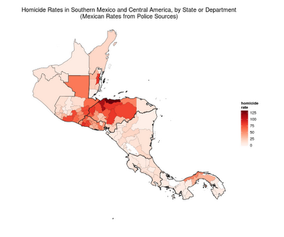Having just posted on violence along Mexico’s northern border, I figured it’s time to analyze what is happing south of Mexico where some countries have experienced sharp increases in homicides.