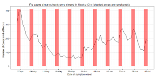 All those lab confirmed flu H1N1 cases caused a total of 125 deaths from March 10th to July 13. To put things in perspective, in the years before A(H1N1) made the jump to humans, during the months of April alone the old flu used to cause about 550 deaths from influenza and pneumonia among adults 65 or older, and about 300 deaths in children less than two years old. Since those 125 deaths were certainly not the only ones, and in fact the Mexican goverment declared the health alert because of an unexpected excess mortality in influenza cases in April, it would be nice to inspect the data, unfortunately I wasn’t able to find it:(