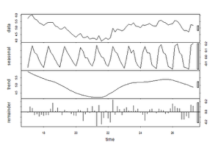 Using R we can get the seasonal decomposition and the trend in swine flu cases: