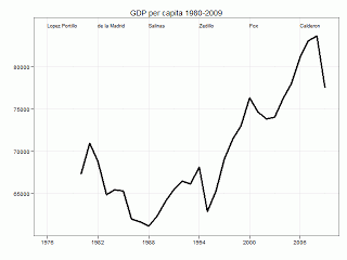 - GDP in 2003 pesos going from 1993 to 2009