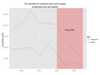- The cultivation of marijuana and opium poppy increased and drug seizures decreased after the drug war started. The street price of cocaine in the US increased as a consequence of a larger number of seizures by Mexican officials.