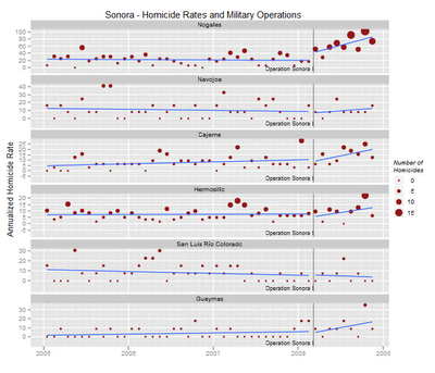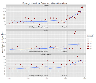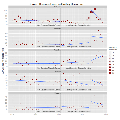 - While the first joint army operations in 2006 and 2007 lowered the homicide rates in Michocán and Guerrero, later military operations in Chihuahua, Durango, Nuevo León, Veracruz and Durango have coincided with increases in homicides and attempts by the Sinaloa cartel to take over drug trafficking routes from rival cartels.