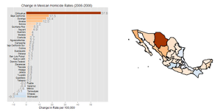 | Sources: Before 2009 the homicide data is from INEGI. For the first half of the 2009 puntoporpunto, and for the second half of 2009 larednoticias. For 2010 Agencia EFE |