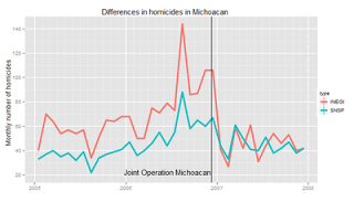 Well, there certainly was a big increase in violence, though as in Chihuahua in 2008, the number of homicides was much lower according to the police data. You can argue about whether sending the army was the right decision, but certainly the federal government had cause for aiding Michoacan. That is, of course, assuming the government of Felipe Calderon trusts the vital statistics and doesn’t trust the SNSP.