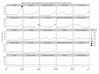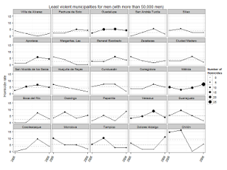 As you can see, in Ciudad Juarez it’s only with the drug war that murder rates against women skyrocketed. In spite of its stereotype as the world capital of femicides it was a relatively safe city. Place like Toluca near Mexico City, and Lazaro Cardenas in Michoacan used to have higher homicide rates.
