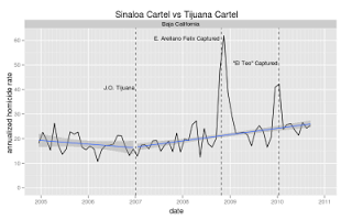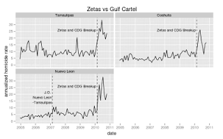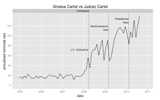 - Starting January 2007 the number of homicides in the state of Mexico dropped by half from one month to the next. Perhaps some bodies were swept under the bed?