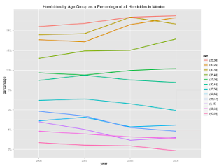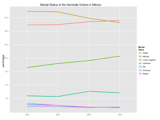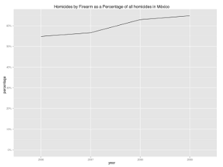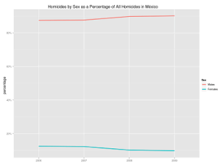 When violence increases it’s usally men who suffer the most, though according to newspaper stories there was a big increase in the proportion of women murdered in Ciudad Juárez in 2010, maybe the increase in the percentage of homicide victims who are men will stop next year?
