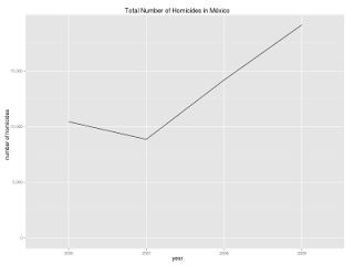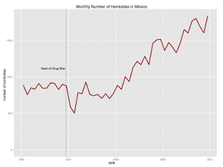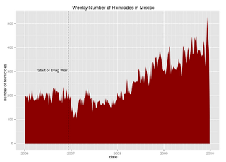 Most of the increase has been because of the drug war, though as Mexico becomes more violent there has been a small rise in homicides not related to the drug war.