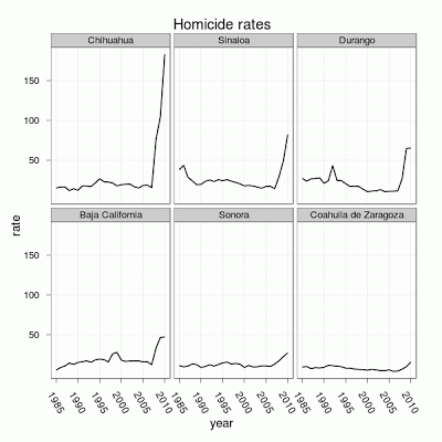 Since there were no military operations in these states previous to the escalation of violence this would be evidence against the theory that the violence in México is mainly the byproduct of the military coming in and unraveling local crime markets by taking over police duties.