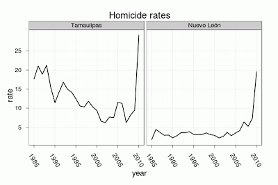 The split between the Zetas and the Gulf Cartel led to an increase in violence in Tamaulipas and Nuevo León (and to a lesser extent San Luis Potosí)