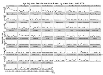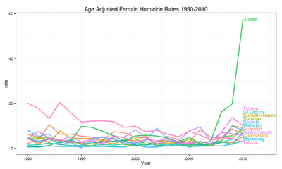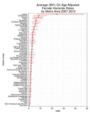 Notice how if we look at the drug war years Toluca actually had a lower female homicide rate than Monterrey in 2010, which used to be the safest metro area in Mexico.