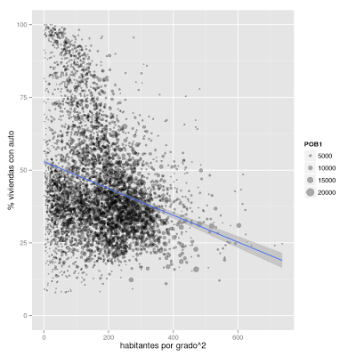 There’s also a negative relationship between car ownership and population density, though obviously a lot more variables are involved. The rich areas and the outer ring surrounding the urban center are low in population density, while the poor mostly live in high population density areas.