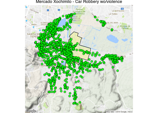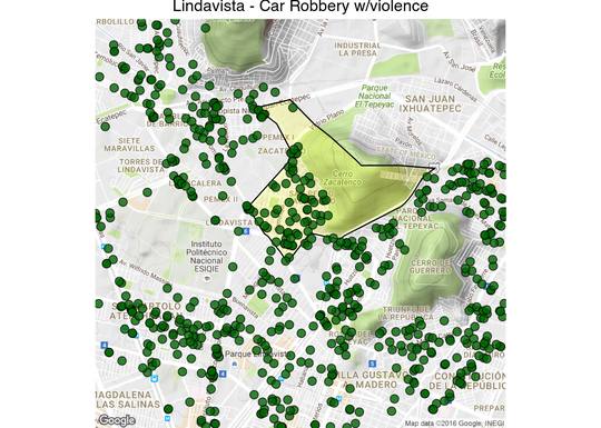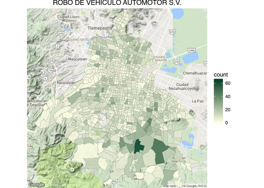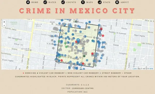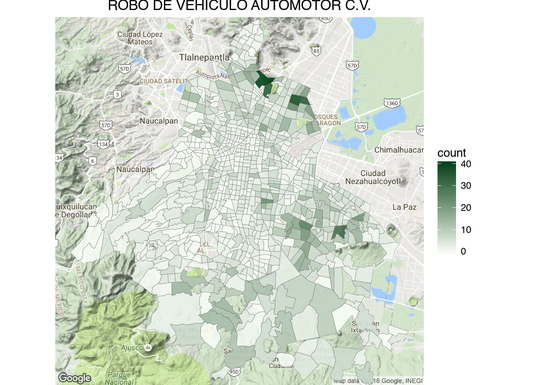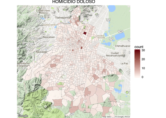 Thanks to an information request to the SSP‑CDMX hoyodecrimen.com now has crime data at the latitude and longitude level. You can access the data systematically using the API or download it in full. In this post I’ll provide many examples of how to manipulate the API to create maps.