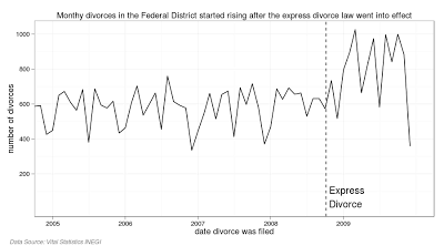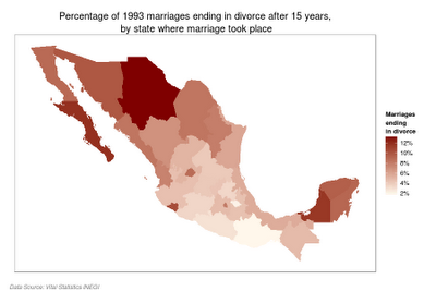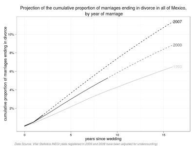 Over the last two decades families in Mexico have undergone rapid social changes. The proportion of marriages ending in divorce has risen for each cohort since data became available, this is independant of the recently approved express divorce law in the Federal District.