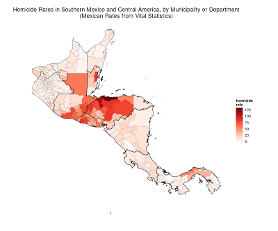 Having just posted on violence along Mexico’s northern border, I figured it’s time to analyze what is happing south of Mexico where some countries have experienced sharp increases in homicides.